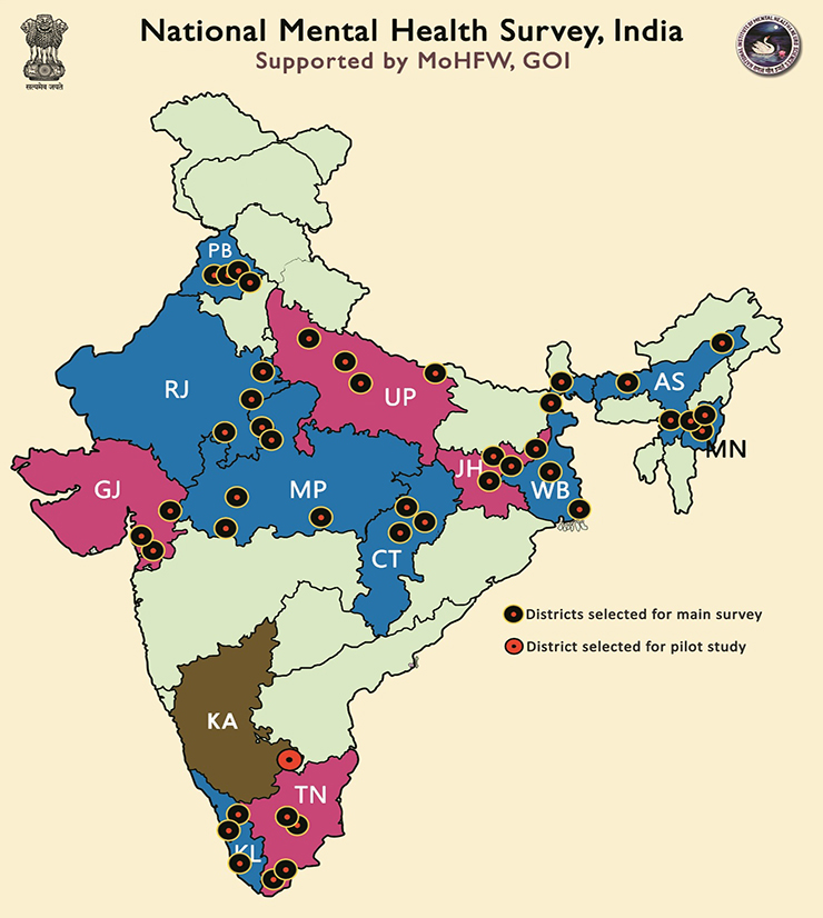 The NMHS was undertaken as a large scale, multi-centred national study on the various dimensions and characteristics of mental health problems among individuals aged 18 years and above across 12 Indian states during 2014 - 16.