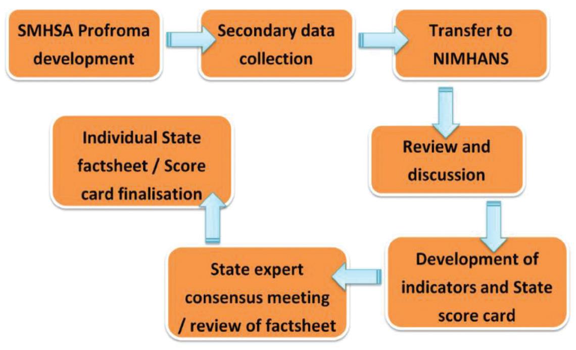 The purpose of the state level experts’ consensus meeting was to have a broader discussion and better documentation of the mental health systems in the state, to review the collected information, to examine the indicators, to suggest changes/modifications and to agree on areas requiring further data inputs. Furthermore, where data for some domains / components were not available, an agreement / consensus had to be arrived at to provide an understanding as a first step. The experts (15 to 20 in number) participating in the consensus meeting varied across states and often included one or more of the following: State Principal Health Secretary or representative, State NHM Director or representative, State Mental Health Programme Officer, Member-Secretary of the State Mental Health Authority, psychiatrist(s) from both the private and public sectors, public health specialists, civil society members, legal advisors, a representative from the state IEC cell, etc. During the consensus meeting each of the components of the proforma was discussed in detail and The group deliberated, debated and discussed issues before reaching consensus on the ten core parameters of mental health systems.