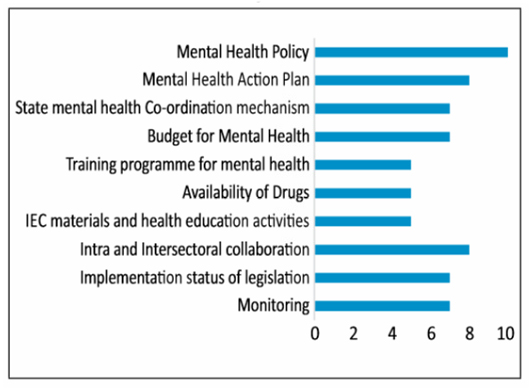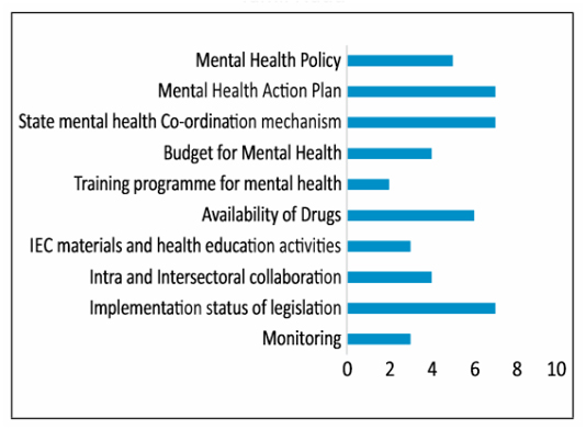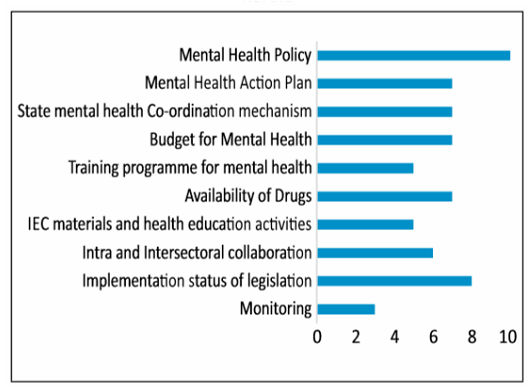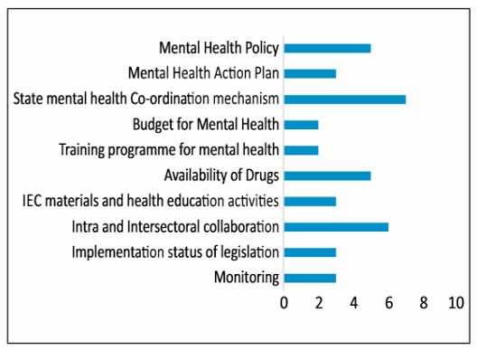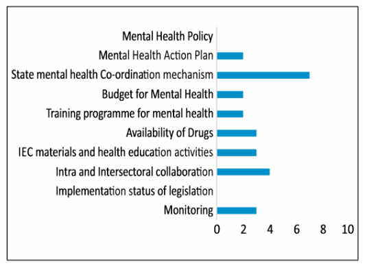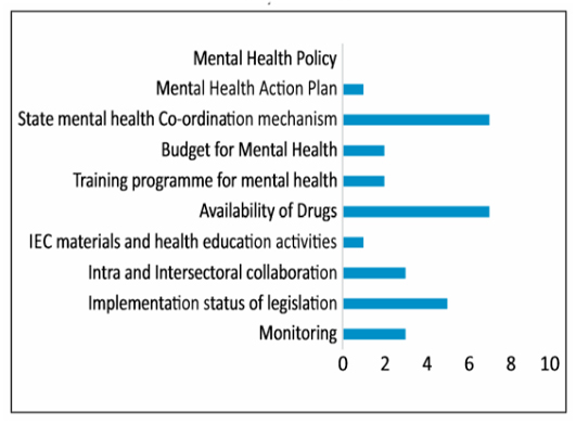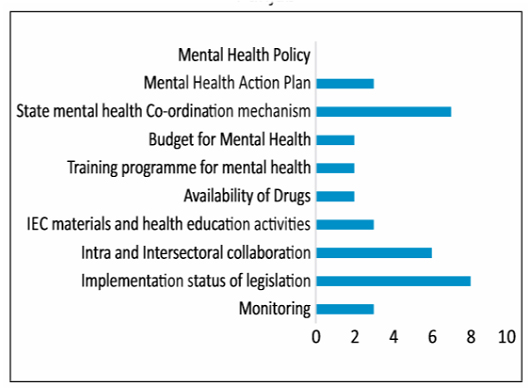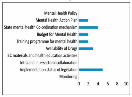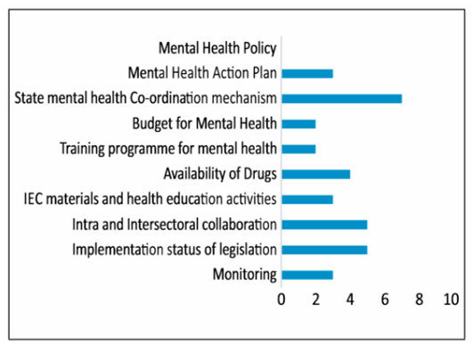 In accordance with the Mental Health Act, 1987 and following the Supreme Court directive, there has been significant progress in the setting up of a Mental Health Authority in each state. The State Mental Health Authority has a defined role for improving care in institutions and the certification of institutions. However, the delivery of mental health care in each state is the responsibility of that state’s health services and some had an in-charge programme officer who had diverse roles and responsibilities with very little time left for mental health. Coordination between the mental health authority, the state department of health, medical education and welfare was found lacking in many states.